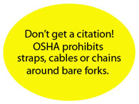 High strength heel pins and tether chain securely holds the Lift Hook to the forks.